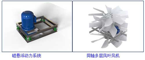 為盡量降低冷卻塔本體的風機噪聲,采用同軸多層風葉超靜音風機(21片),經鈍化處理的鋁合金葉片具有耐化學性腐蝕的特性。該風機的原理是降低轉速(120轉)增加風量,同比普通風機可以達到降噪接近20dB(A) 的效果,為滿足更加嚴格的降噪條件開創了新的標準。