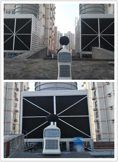 但帶給人們歡樂的同時,其中央空調系統冷卻塔設備卻給附近居民帶來困擾,嚴重影響住戶的正常生活(冷卻塔離居民樓僅6米),如何在如此近的距離實現不擾民,卻又不影響現有主機散熱一直是個棘手問題,而建設單位及設計提出的方案是:不限定品牌、網上公開招標,不接受圍蔽降噪為前提,要求冷卻塔6米直線距離實現白天60分貝,晚上50分貝;